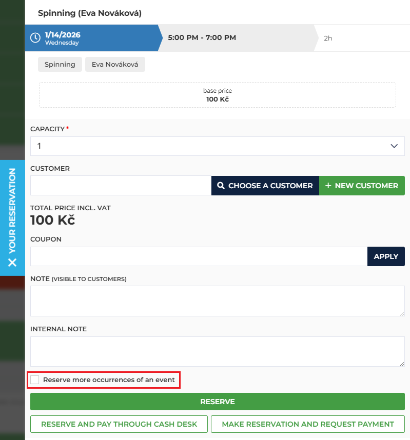 With this type of event, the possibility of creating multiple reservations at once is also supported, see recurring reservations.